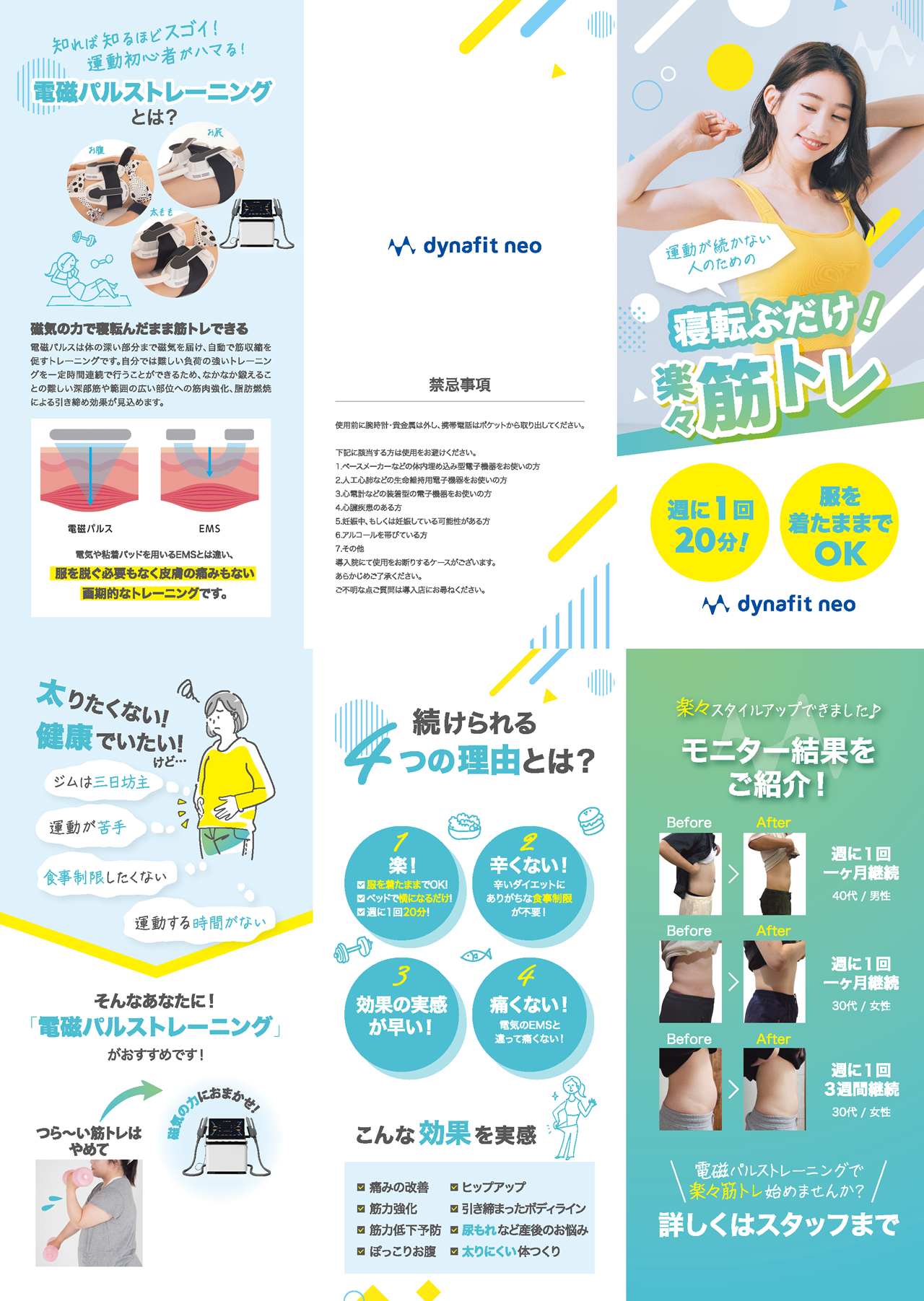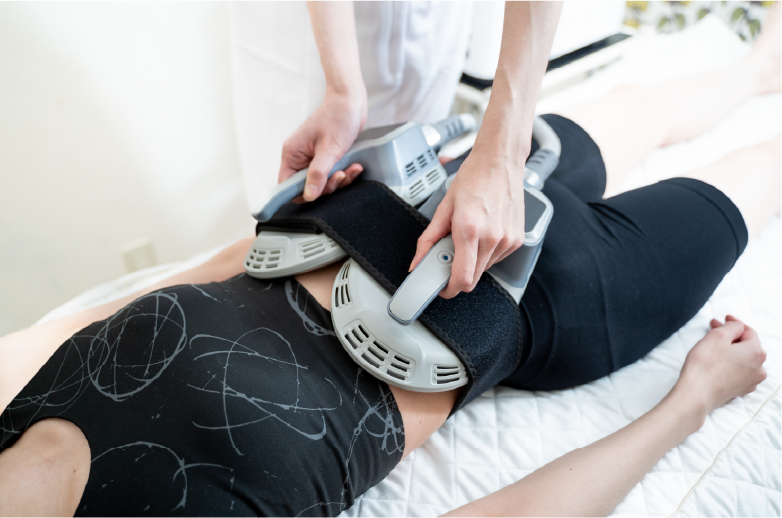 磁気刺激を使い服を着たまま効率よく筋肉をトレーニングできる機器です。