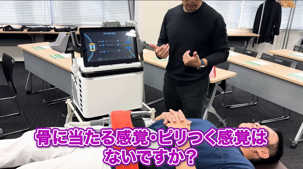 電磁パルスを利用して骨盤底筋を非侵襲的に強化する画期的なマシンです。