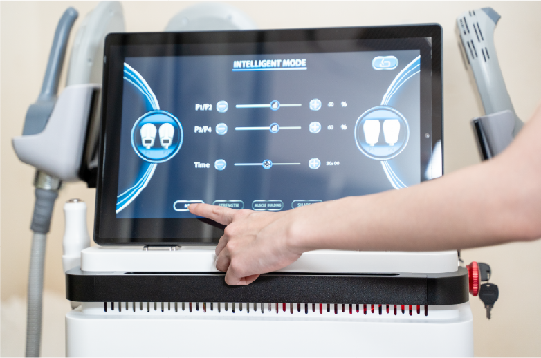 電磁パルスを利用して骨盤底筋を非侵襲的に強化する画期的なマシンです。
